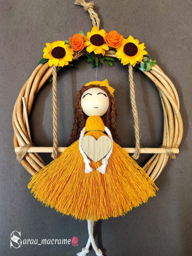 آویز دست ساز دختر آفتابگردان چوبی