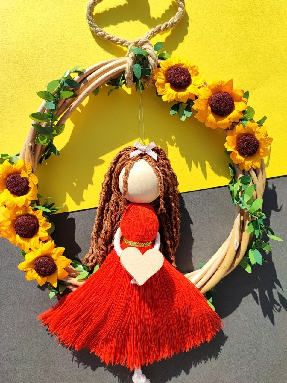 آویز دست ساز دختر آفتابگردان چوبی