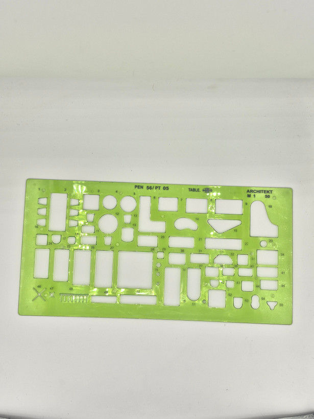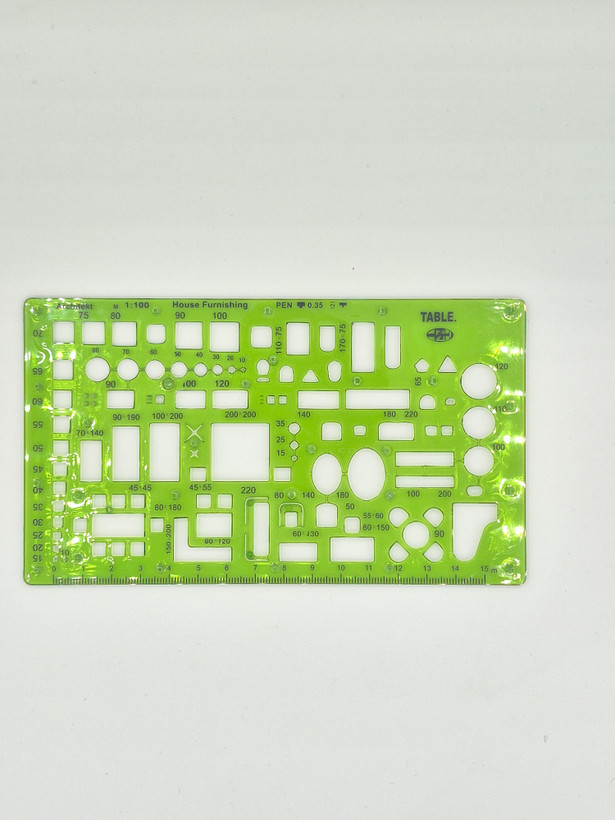 شامل یک عدد شابلون دایره و بیضی مثلت مبلمان سایز بزرگ و کوچک جمعا 5عدد مناسب برای طراحی و معماری عمران