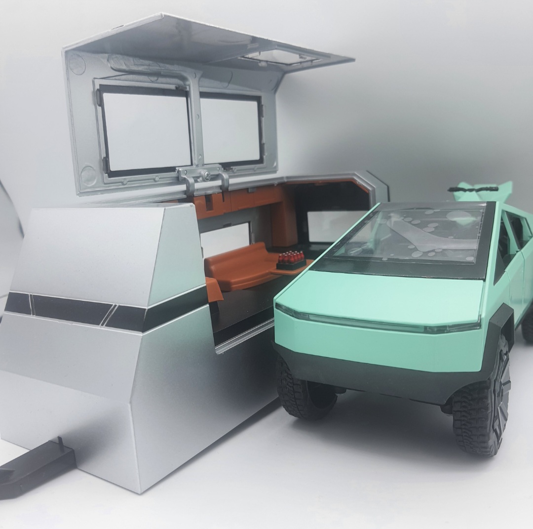 ماکت فلزی تسلا سایبرتراک همراه کمپر بزرگ