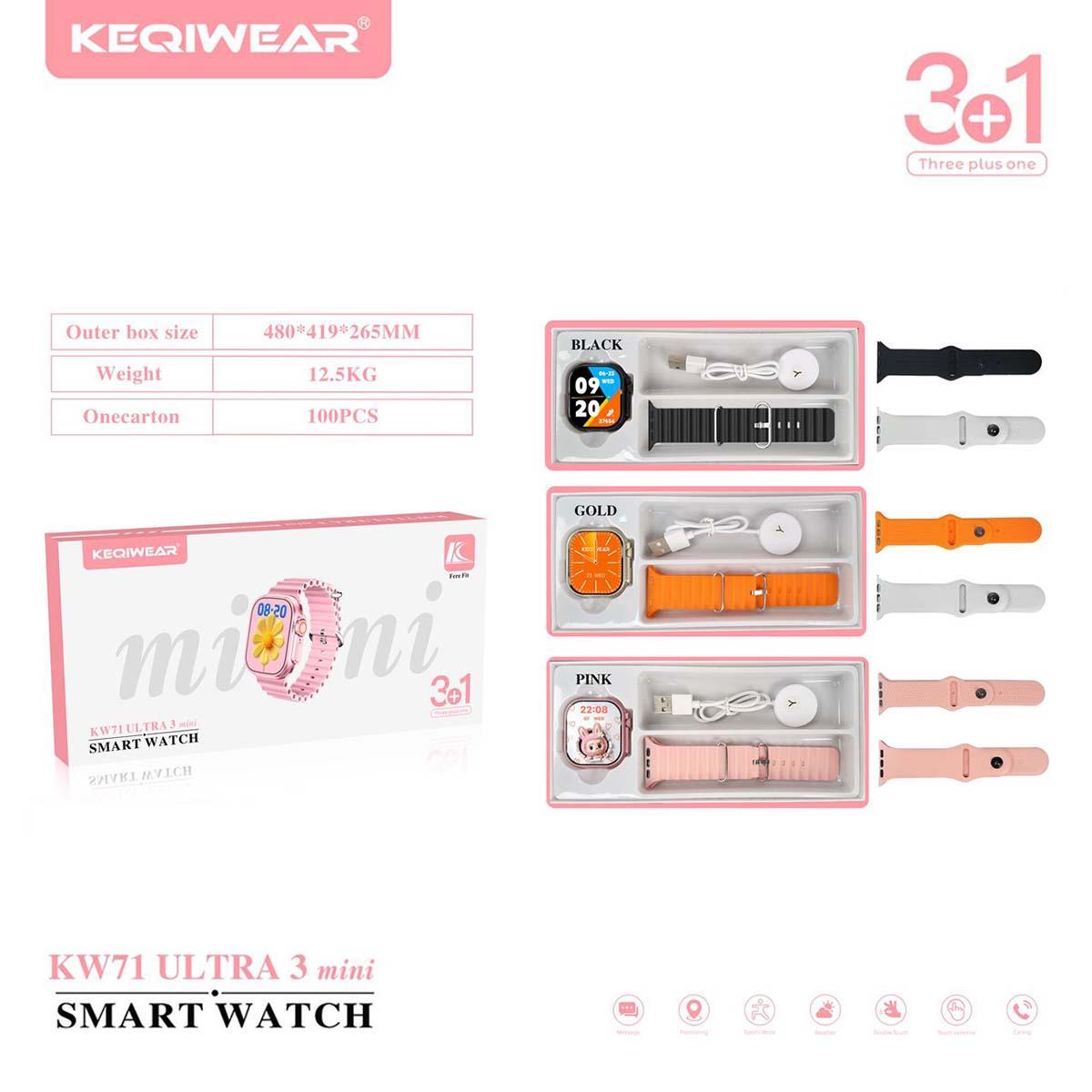ساعت هوشمند KW71 Ultra3 Mini از برند KEQIWEAR با بدنه آلومینیومی سبک و بند سیلیکونی نرم مخصوص مچ های ظریف بانوان، نوجوانان و کودکان طراحی شده و برای استفاده روزمره، رسمی و ورزشی مناسب است. این ساعت با نمایشگر AMOLED و امکاناتی مثل مکالمه مستقیم و بلوتوثی، کنترل موسیقی، واچفیسهای متنوع، پایش سلامت کامل و سنسورهای ضربان قلب، اکسیژن خون و پایش خواب تجربه ای حرفهای ارائه میدهد. با پشتیبانی از اندروید و iOS و شارژ وایرلس، استفاده طولانی و آسان امکان پذیر است