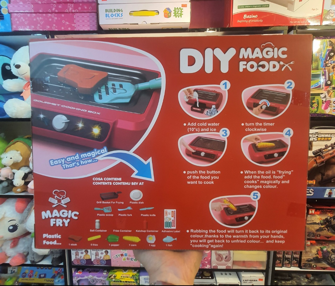 سرخ کن اسباب بازی چراغدار و موزیکال. همراه سبزیجات و غذا. کارایی به این صورت هست که مقداری اب داخل دستگاه میریزیم و وقتی سبزیجات یا گوشت را تفت میدهیم تغییر رنگ داده و به اصطلاح برشته میشود.