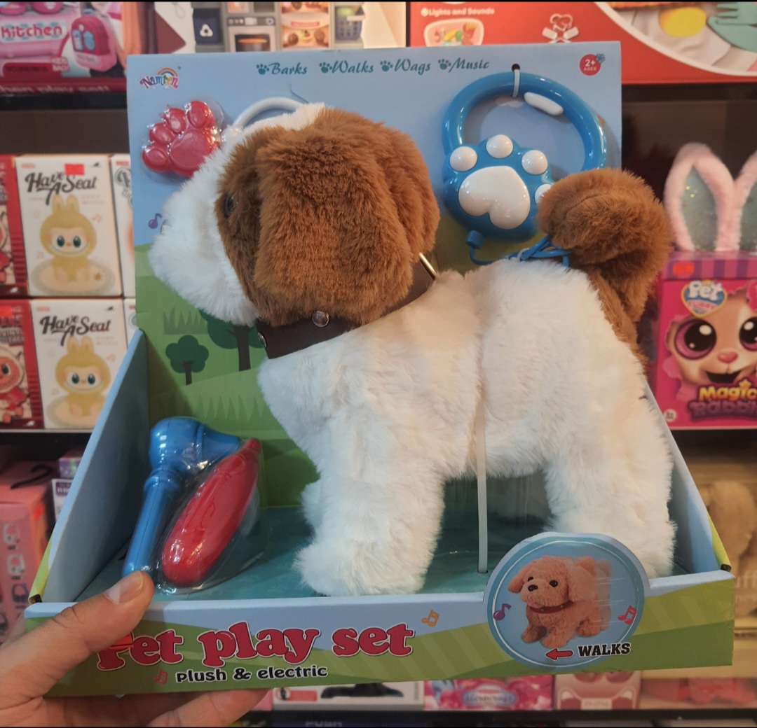 مدل اول : دکمه روی قلاده را میزنیم و شروع به حرکت میکند دم تکان میدهد اهنگ میزند و واق واق میکند.