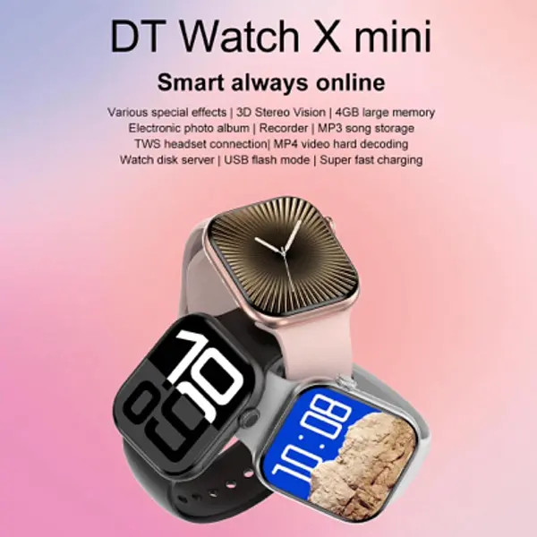 علاوه بر تماس مستقیم،داشتن سنسور های سلامتی متنوع، نمایش پیام ها،و… از دیگر عملکرد ها و ویژگی های فوق العاده اسمارت واچ DT WATCH X Mini میتوان به ضبط صداها برای حدود ۴ ساعت، اتصال مستقیم به ایرپاد، داشتن هوش مصنوعی و دستیار صوتی ، قابلیت پخش ویدیو و…اشاره کرد.