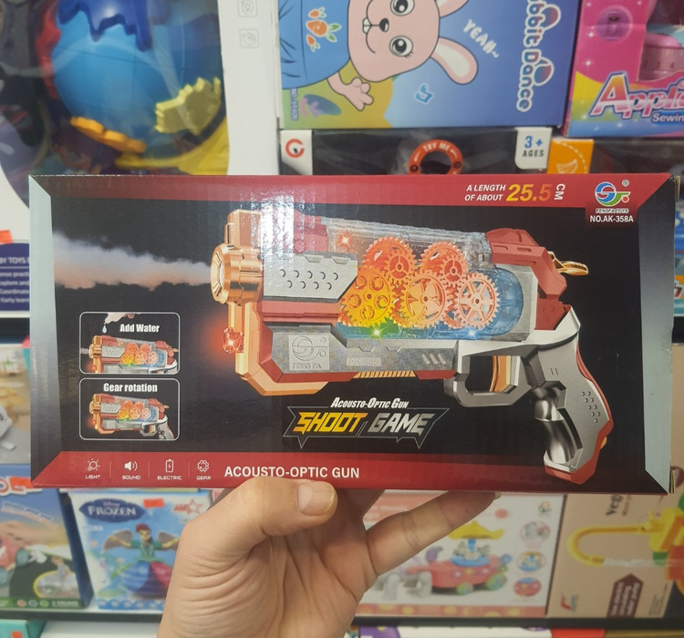 موقع شلید بخار میدهد و چرخ دنده های داخل تفنگ به چرخش در امده و صدای شلیک کردن داده و چراغ روشن و خاموش میشود